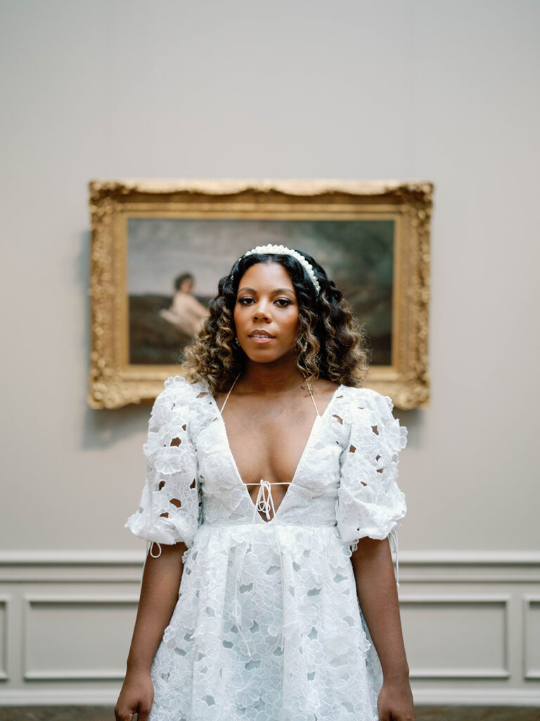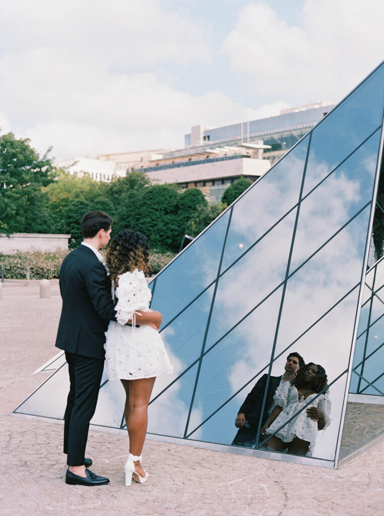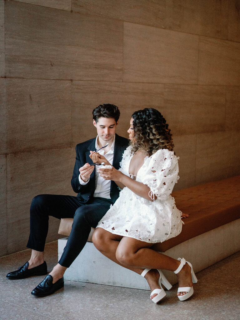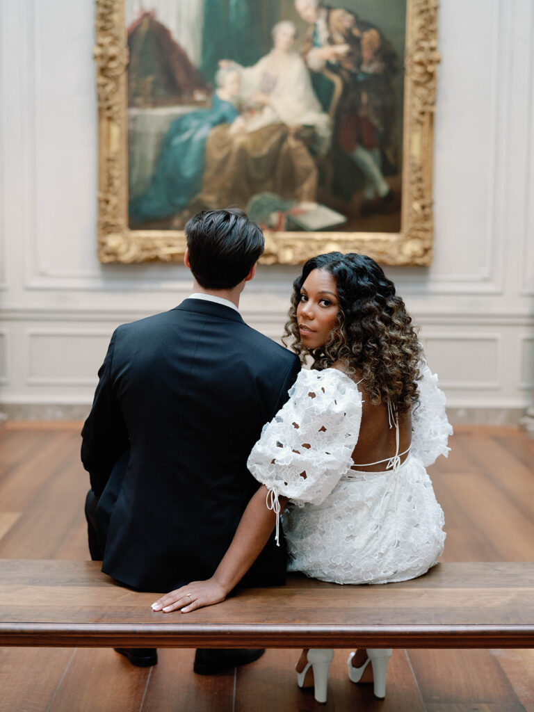 Mitchell and Alexis, high school sweethearts actually got engaged in a museum, so it felt very right to have their engagement session at a museum too. I met them at the National Gallery of Art Museum in Washington, DC, right next to The Mall. The bride had two looks for their session. Look one was more sleek and perfectly paired with the columns and architectural details outside of the building, while look two was more romantic and had feeling, much like the subjects we saw in many of the paintings. The two held hands while walking through the museum before a quick put stop to pick up some gelato. The two will wed later this year.